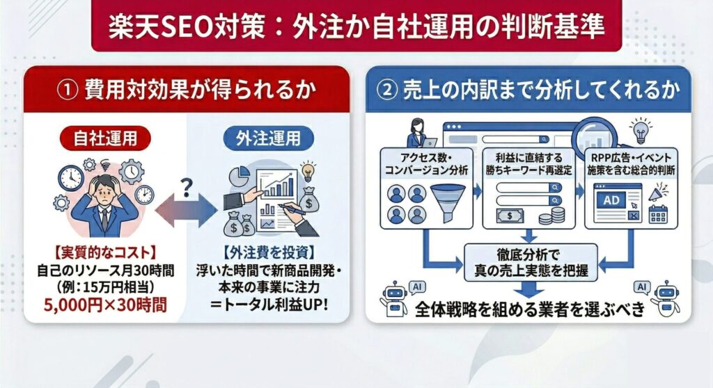 楽天SEO対策を外注するか自分でやるかの判断基準