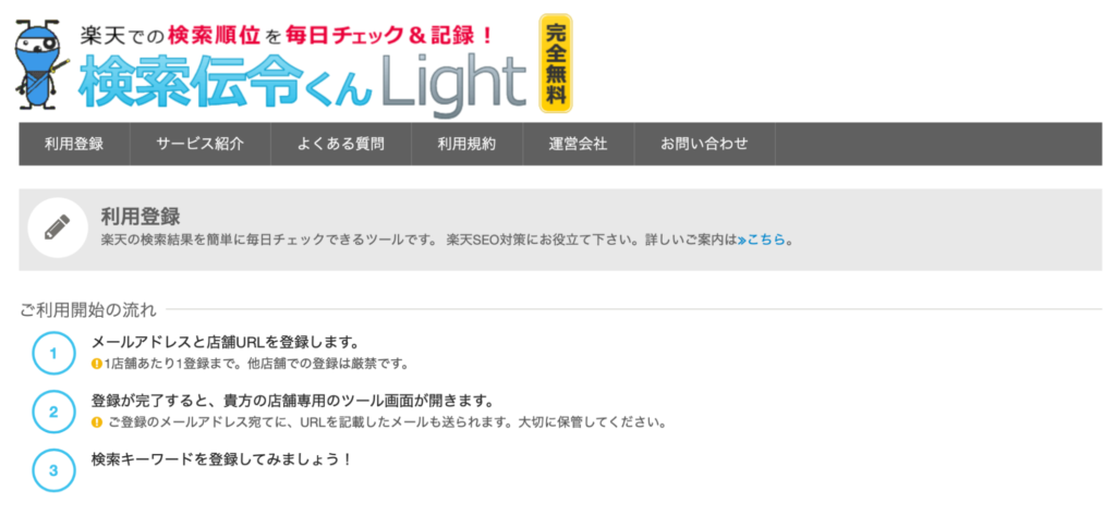 検索伝令くんLightは、楽天市場の検索順位を定期的にチェックできるツールです。