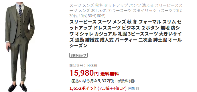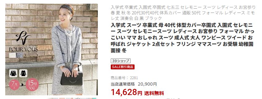 こちらの商品は、”リクルートスーツ”と”タキシード”のように、用途が異なるキーワードを同じ商品名に入れてしまっているケースです。