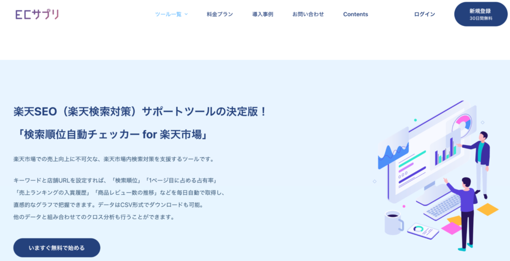 楽天SEO対策では、キーワードや順位のデータをチェックし、PDCAサイクルを回すことが欠かせません。ここでは、楽天SEO対策に欠かせないツールを3つご紹介します。
